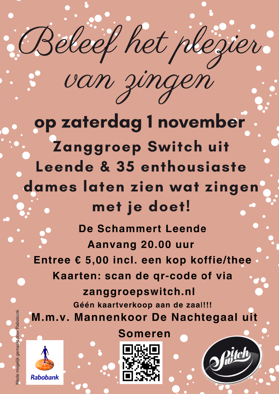 1 november 2025 : concert Zanggroep Switch + vele enthousiarte dames in de Schammert in Leende mmv mannenkoor de nachtegaal